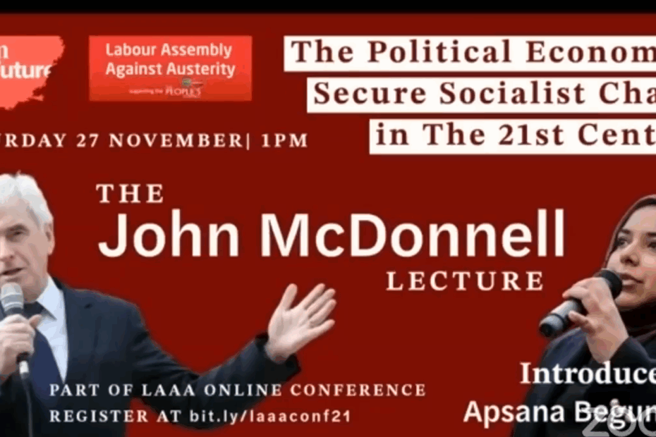 The John McDonnell lecture – The Political Economy to Secure Socialist Change in 21st Century. Introduced by Apsana Begum. In partnership with Claim the Future.