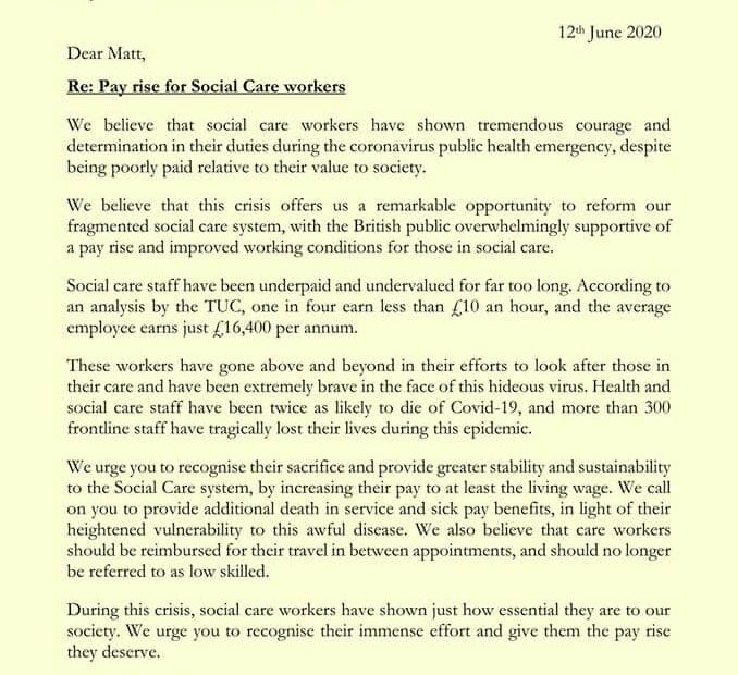 I am proud to have signed this joint letter calling on the Government to increase the pay of social care workers and nurses to at