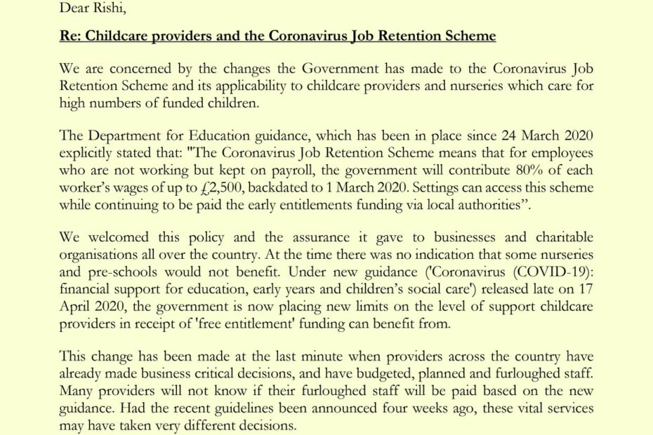 I have been contacted by local nurseries, regarding the recent information stating that nurseries would not be able to claim furlough payment for all employees