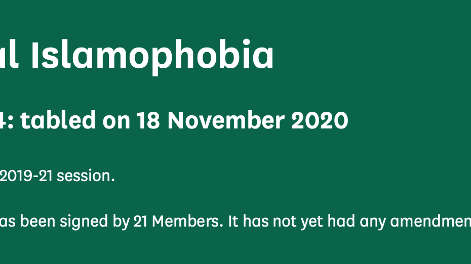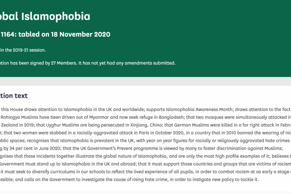 Today I tabled an Early Day Motion to raise awareness of Islamophobia all over the world, and the part that the UK has to play