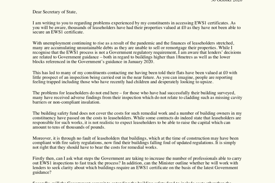 Residents across my constituency have seen their properties valued at £0 as they do not have an EWS1 certificate. The huge increase in unemployment as