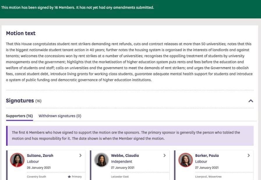 Challenges to student mental health should not be exacerbated by the demands of rent. I’m co-sponsoring this Early Day Motion on university student demands from Zarah