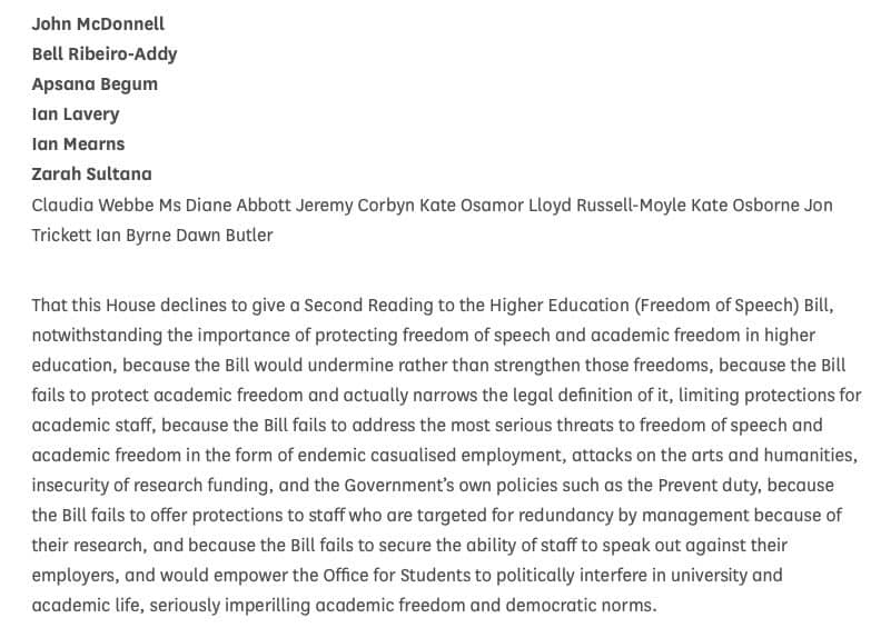 Reasoned amendment on academic freedom