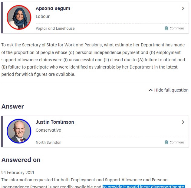 I’ve been asking questions of the Government for some time on Personal Independent Payments and ESA benefits. I recently asked about the vulnerability of people