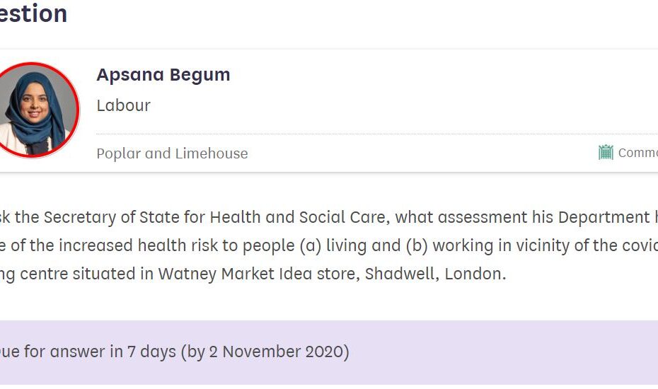 I’ve asked the Secretary of State for Health and Social Care questions on the COVID19 testing centre at the Watney Market Idea Store. To view